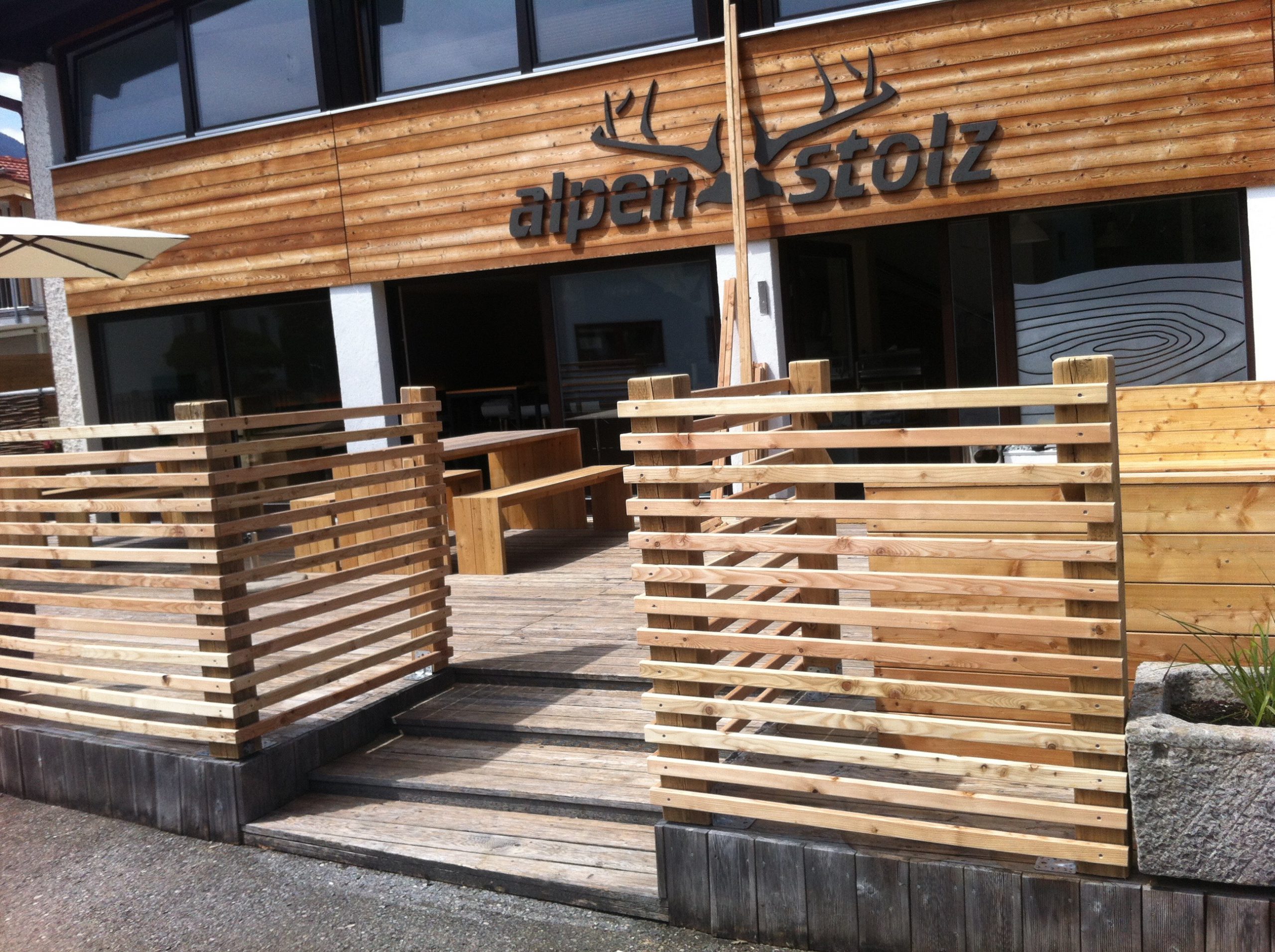 - Freistehende Gartennebeneingangstüre. Schwierigkeit bei dieser Türe war es eine Konstruktion zu fertigen,bei der die Bandaufnahme innenliegend ist, um die durchgängige Rhombusoptik nicht zu unterbrechen.